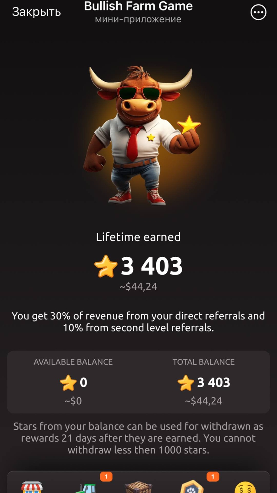 El sistema de referidos en Bullish Farm no solo recompensa a los jugadores activos, sino que también hace que su promoción sea rentable gracias a una estructura de recompensas de múltiples niveles y un sistema de retiro claro.