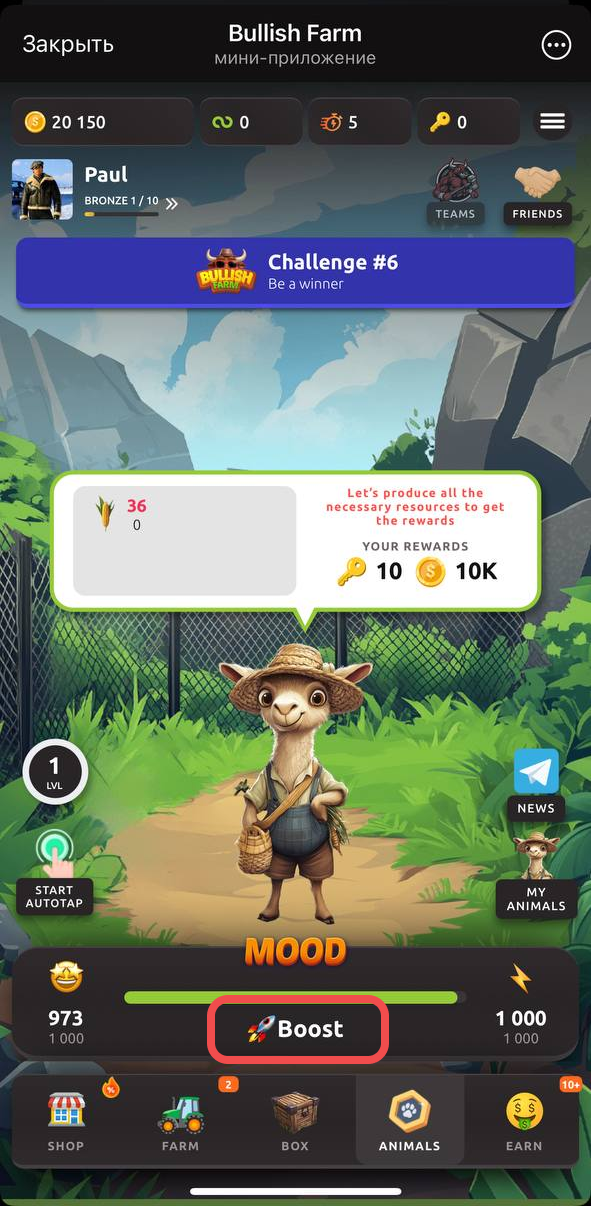 El autotoque afecta a la caja activa y a todos los Compañeros al mismo tiempo. Esto significa que mientras el autotoque esté activo (xp de la caja > 0), ayudará no solo a abrir la caja, sino también a mantener a los Compañeros de buen humor. De esta manera, con el autotoque ganarás monedas de cada toque en los Compañeros.